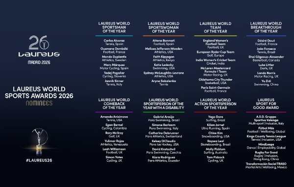 今年一同入圍公益獎的還包括:Fútbol Más,透過在世界各地的社區舉辦足球錦標賽,促進共融與尊重;MindLeaps,結合學術課程與舞蹈課堂的獨特模式,提升青少年的就業能力;ASD Gruppo Sportivo Valanga,透過體育工作坊及心理學輔導,致力解決青少年逃學問題並提升就業能力;Kings County Tennis League,透過改造布魯克林的閒置公共空間,增加青少年接觸網球的機會;以及Transformación Social TRASO,結合專業主導的團體治療與武術課程,為墨西哥的年輕人提供支援。